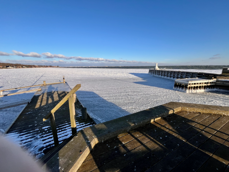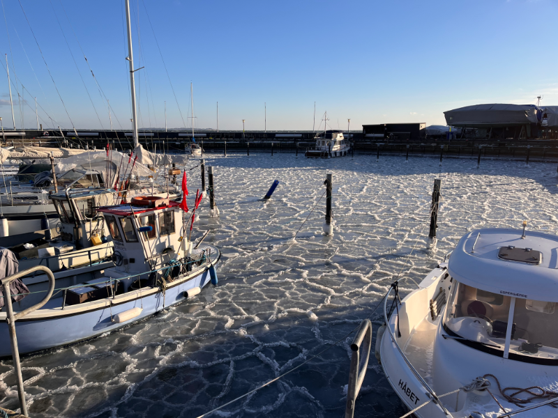 The picture below shows the entrance to Espergærde Harbor which was completely blocked by ice.